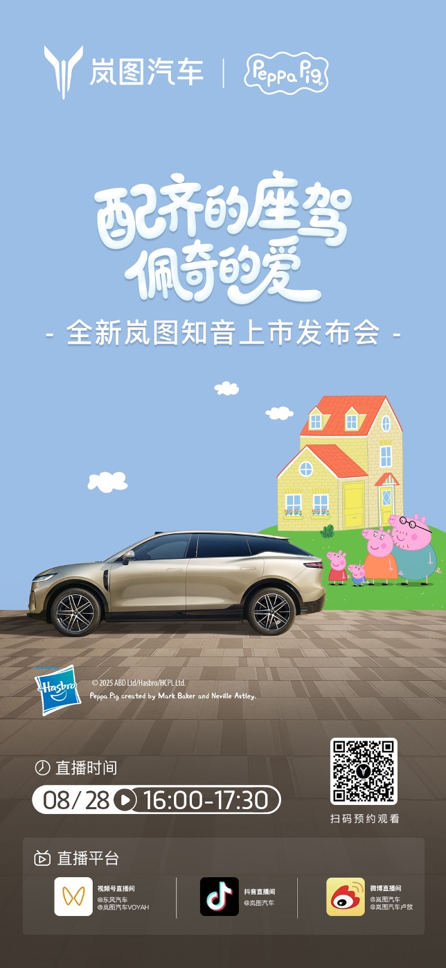 随着小猪佩奇一家的到来,全新岚图知音的上市热度持续攀升。据悉,岚图知音将于8月28日正式上市,并于次日开幕的成都国际车展中,携手小猪佩奇一家亮相岚图展台,为公众带来更多互动惊喜。